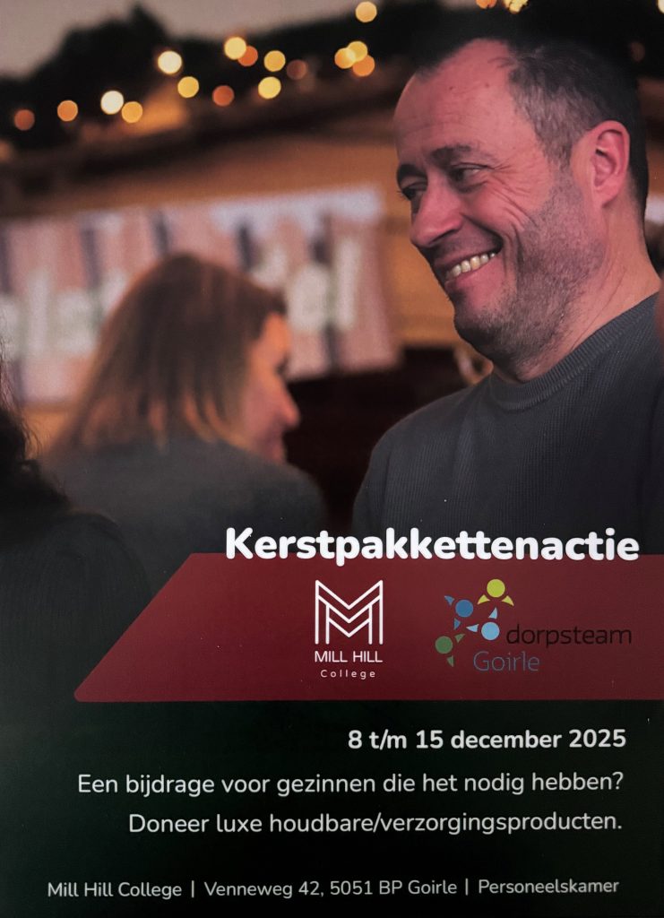 We gaan ons dit schooljaar wederom inzetten voor mensen die een extra-tje goed kunnen gebruiken in de dure decembermaand. Voor de tweede keer stellen we kerstpakketten samen voor het Dorpsteam Goirle. Na het succes van vorig jaar is opnieuw voor dit lokale goede doel gekozen omdat het Mill Hill College gevestigd is in Goirle en zich maatschappelijk en sociaal betrokken voelt bij de gemeente Goirle.